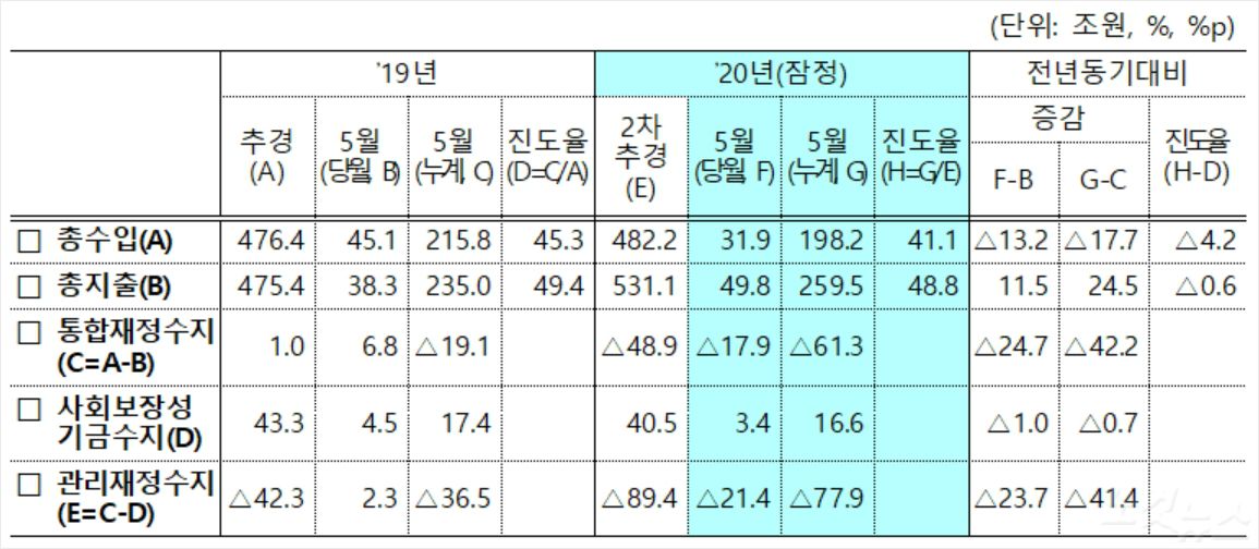 5월까지 누계 총지출은 259조 5000억 원으로 지난해 같은 기간보다 24조 5000억 원 늘었다.