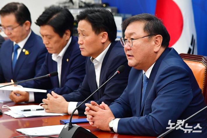더불어민주당 김태년 원내대표가 7일 오전 국회에서 열린 당 원내대책회의에서 모두발언을 하고 있다.