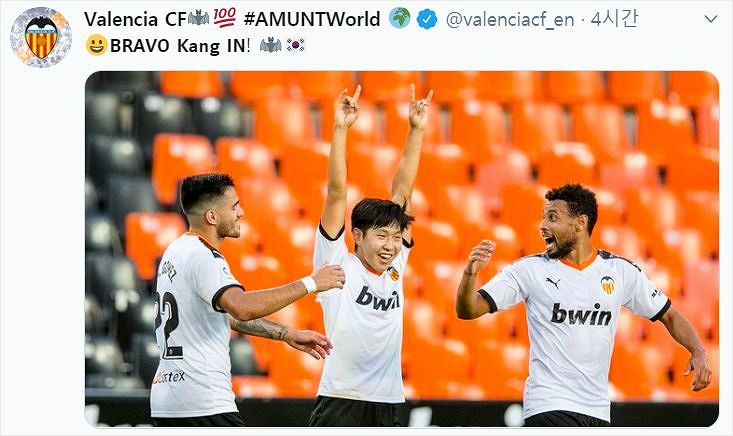 이강인은 안방에서 열린 바야돌리드전에 후반 18분 교체 출전해 후반 43에 소속팀의 2대1 승리를 이끄는 짜릿한 결승골로 승리의 중심에 섰다.(사진=발렌시아 공식 트위터 갈무리)