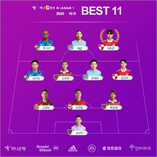 이동준은 주니오(울산), 데얀(대구)과 함께 10라운드 베스트 11 공격수 부문에 자리했다. 이동준에게 2개의 도움을 하고, 본인도 이동준의 도움으로 골 맛을 본 김진규(부산)도 김인성(울산), 송민규(포항), 김대원(대구)와 미드필더 부문에 이름을 올렸다.