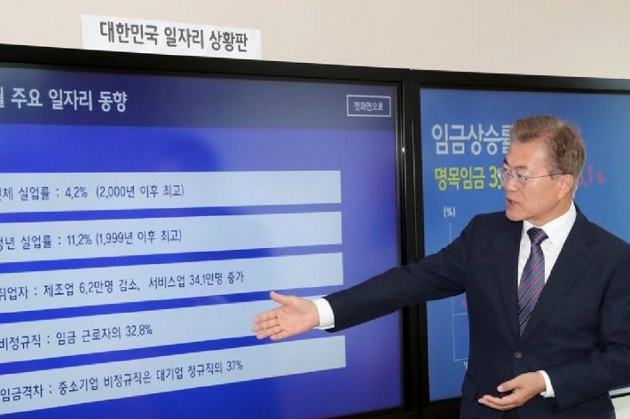 문 대통령은 이날 ILO 글로벌 회담의 '지도자의 날' 행사에 영상메시지 연설을 보내 "경제 위기 때마다 불평등이 심화되었던 경험을 되풀이하지 않기 위해, 한국은 '고용 안전망'을 더욱 튼튼히 구축하고자 한다"며 이같이 밝혔다.