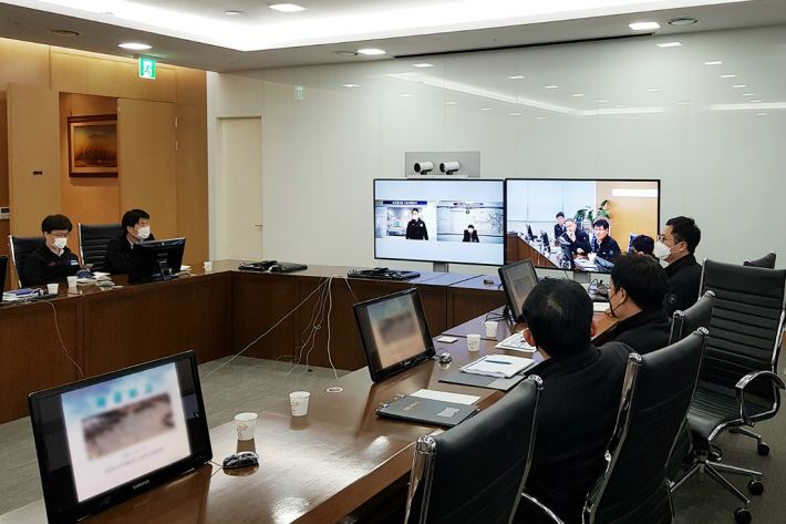 계룡건설 본사와 현장간 화상회의 모습.(사진=계룡건설 제공)