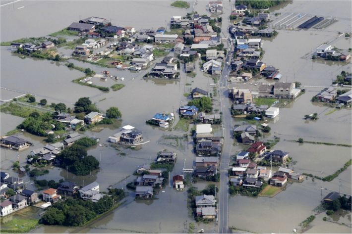 홍수로 물에 잠긴 일본 마을(사진=연합뉴스)