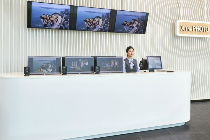 엑스더라운지와 하늘 위의 바다를 배경으로 특별한 기억을 기록하는 엑스더포토(사진=부산엑스더스카이 제공)