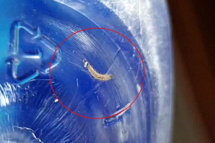 15일 인천시 계양구 병방동 한 주택에서 발견된 유충이 물병에 담겨 있다.(사진=연합뉴스)