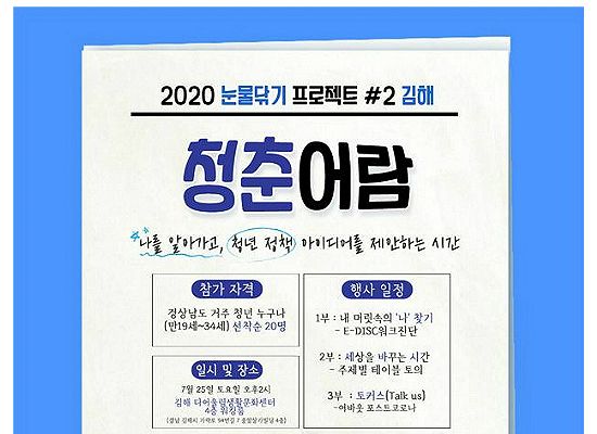 청년들의 활동을 보면, K.E.P팀의 '2020 눈물닦기 프로젝트'는 근로 취약계층 청년들을 대상으로 참여형 강연을 진행해 경제활동 인구로의 전환에 기여하는 프로젝트다.