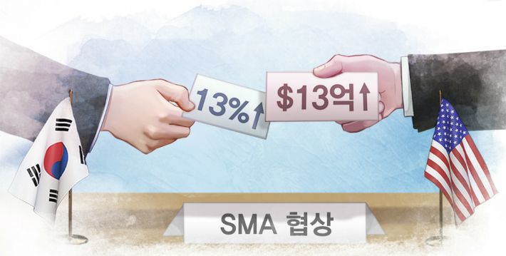 한미 방위비 협상단은 지난 3월 한국이 현재보다 13% 인상하는 안에 잠정 합의한 것으로 알려졌다. 그러나 이후 트럼프 대통령이 이를 거부하고 무려 50% 가까운 인상안인 13억달러를 요구해 난항을 겪고 있다.