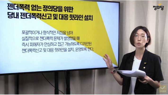 정의당 장혜영 혁신위원장이 19일 유튜브 '정의당 TV'를 통해 '정의당 혁신안 초안 온라인 설명회'를 하고 있다.(사진=연합뉴스)