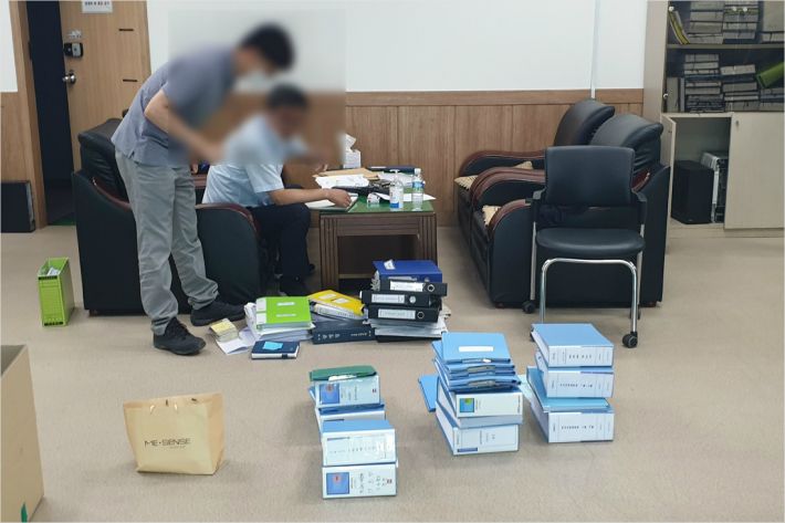 검찰 관계자들이 경주시체육회 사무실을 압수수색하고 있다.(사진=독자 제공)