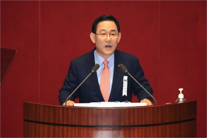 주 원내대표는 이날 오전 국회에서 열린 교섭단체 대표연설에서 "이미 대통령·지방·사법·언론·시민사회 권력까지 완벽히 장악한 상황"이라며 "의회 권력마저도 완전 장악하고 돌격 태세를 구축해 일당 독재, 전체주의 국가가 돼가고 있다"고 비판했다.