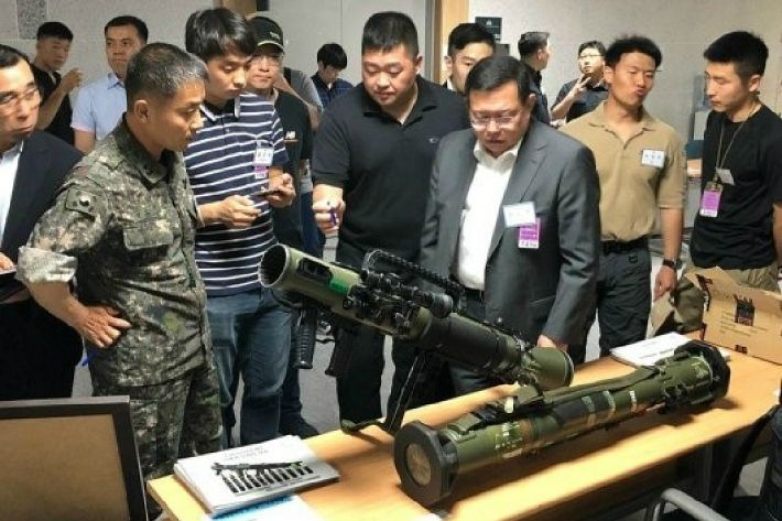 지난 2018년 국회에서 열린 특수작전세미나에서 전인범 전 특전사령관이 스웨덴제 칼 구스타프 무반동포를 살펴보고 있다. 칼 구스타프는 미군 특수부대와 경보병 부대가 화력지원용으로 사용한다. (사진=특수·지상작전 연구회 제공)