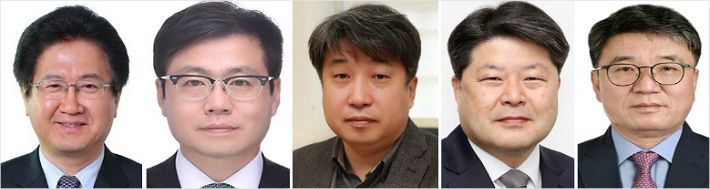 왼쪽부터 서주석 청와대 국가안보실 1차장, 여한구 신남방 신북방 비서관, 도재형 고용노동비서관, 하동수 국토교통비서관, 류근혁 사회정책비서관(사진=청와대 제공)