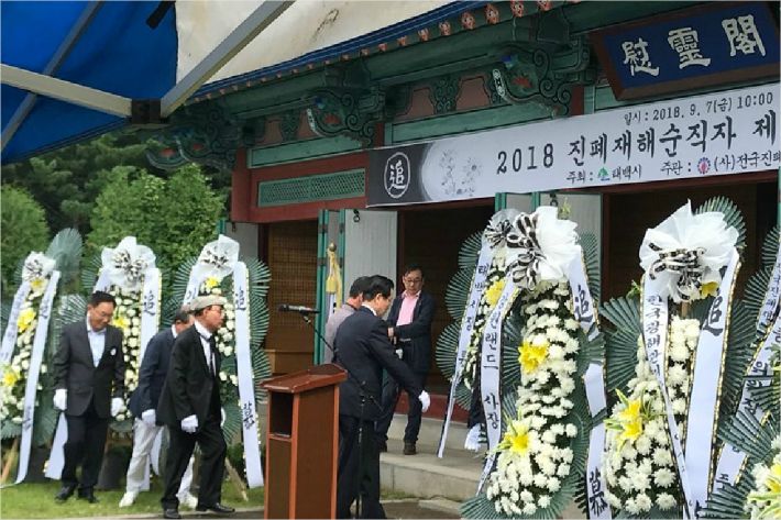 지난 2018년 9월, 태백시 진폐재해순직자 위령각에서 진폐로 고통받은 분들을 위로하는 행사가 열렸다.(사진=한국진폐재해재가환자협회 홈페이지)