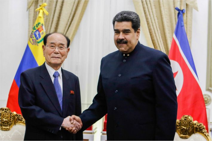 지난 2018년 베네수엘라 방문서 니콜라스 마두로 대통령과 만난 김영남 북한 최고인민회의 상임위원장(사진=연합뉴스)