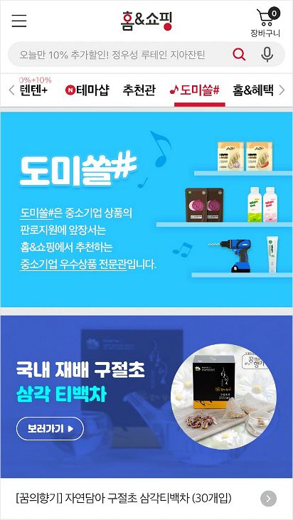 홈앤쇼핑이 모바일앱 내 중소기업 우수상품 페이지인 '도미솔#'을 오픈했다고 30일 밝혔다.