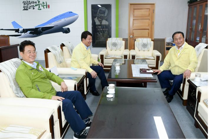 왼쪽부터 이철우 경북지사, 권영진 대구시장, 김영만 군위군수(사진=경북도 제공)