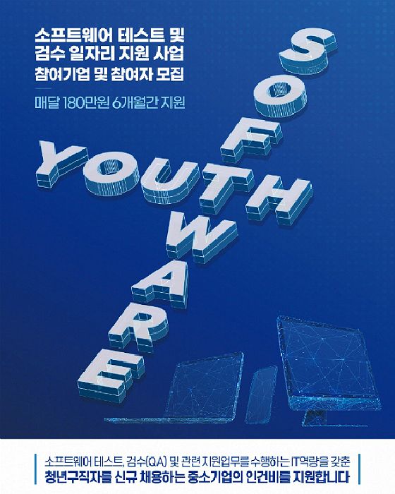 소프트웨어 테스트와 검수 일자리 지원 사업은 소프트웨어 사업을 영위하는 기업에서 소프트웨어 테스트, 검수, 개발지원 등의 업무를 수행하는 청년구직자의 채용을 지원하는 사업이다.