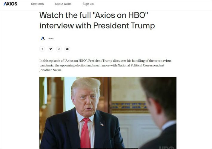 미국 인터넷매체 악시오스는 지난달 28일 진행된 트럼프 대통령과의 37분 인터뷰를 4일(현지시간) 아침 공개했다.