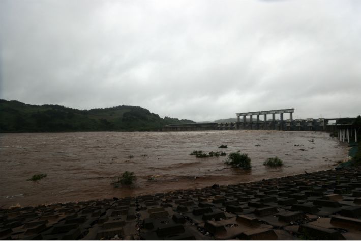 지난 3일 오전 경기도 연천군 군남댐에서 임진강 상류 물이 흘러나오고 있다.(사진=연합뉴스)