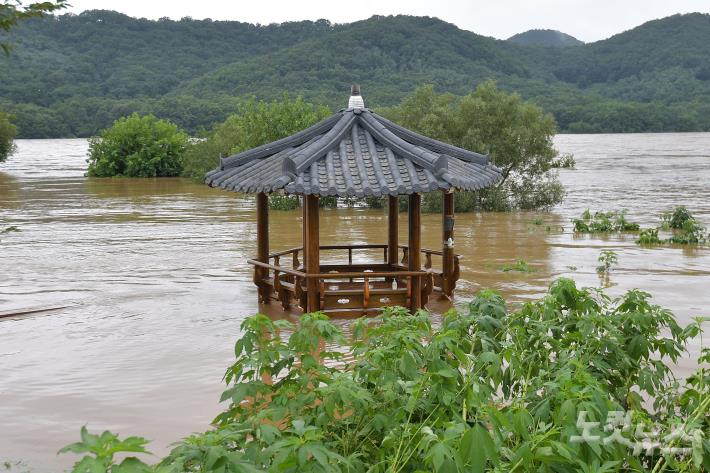6일 오후 경기도 파주시 율곡수목원 정자가 물에 잠겨 있다.