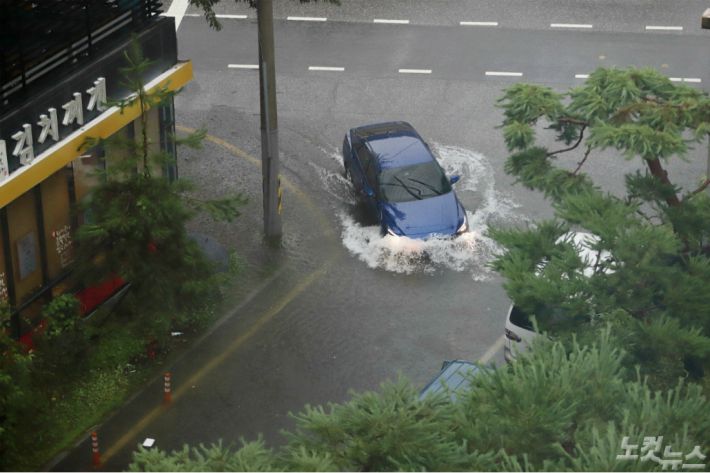 광주 서구 금호동의 한 도로에 빗물이 쌓이면서 차량 통행에 지장을 주고 있다.(사진=자료사진)