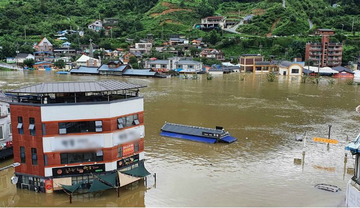 폭우가 내린 지난 8일 오후 경남 하동군 화개장터 일대 마을이 물에 잠겨 있다.(사진=연합뉴스)