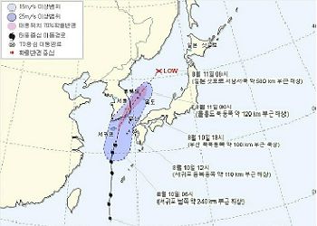 오후 6시쯤 부산 북북동쪽 약 100㎞를 지날 전망인데 이때 울산과 가장 근접할 것으로 보인다.
