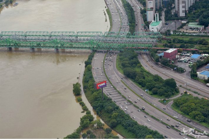 잠수교 전구간 양방향도 전면 통제되고 있다. 잠수교 수위는 오후 7시 기준 7.21m로 보행자 통행 제한(5.5m)과 차량 통행 제한(6.2m 이상) 기준보다 여전히 높다.