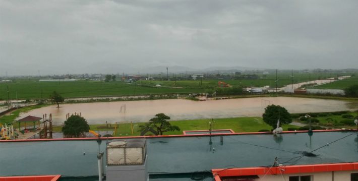 운동장 침수 피해가 발생한 김제 봉남초(사진=전북교육청 제공)