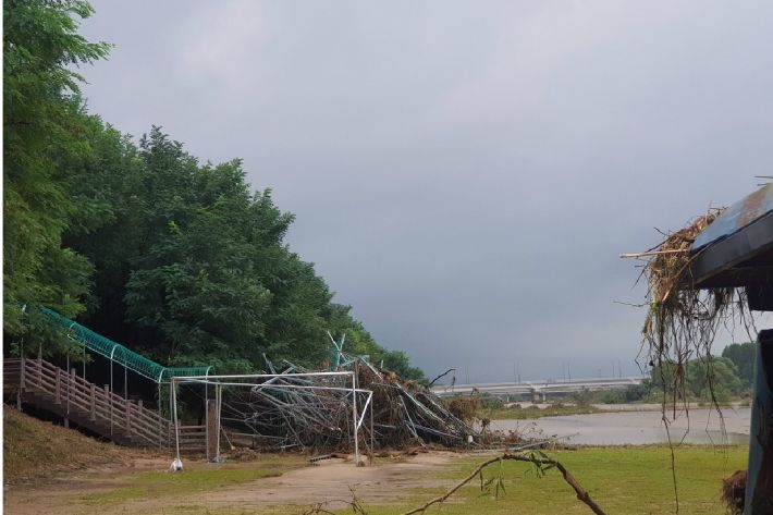 북구청은 12일부터 14일까지 굴착기와 살수차 등 중장비를 활용해 파손된 시설과 토사를 치우는 등 응급 복구에 착수할 예정이다. 이밖에 오는 9월까지 추경 예산을 확보해 드론비행연습장에 펜스 등을 다시 설치할 방침이다.