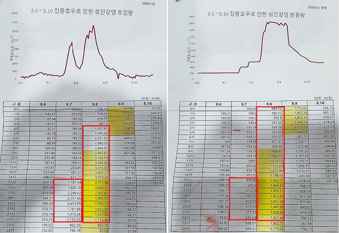 기록적인 폭우가 내린 7일 오후 8시부터 8일 오전 6시 30분까지는 초당 600톤이 방류됐다.