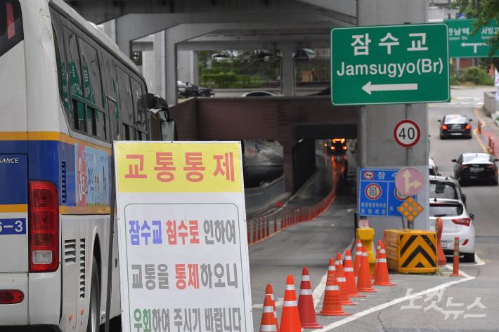 13일 서울 잠수교가 12일째 양방향 전면통제되고 있다. 잠수교는 이달 2일부터 도합 12일째 양방향 전면통제가 이어지면서 최장 잠수기록을 경신했다.