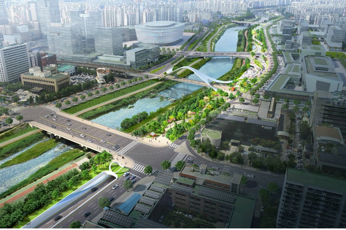 기존 도로에는 중랑천을 따라서 총 연장 0.9㎞, 폭 25~30m 짜리 공원을 조성한다.