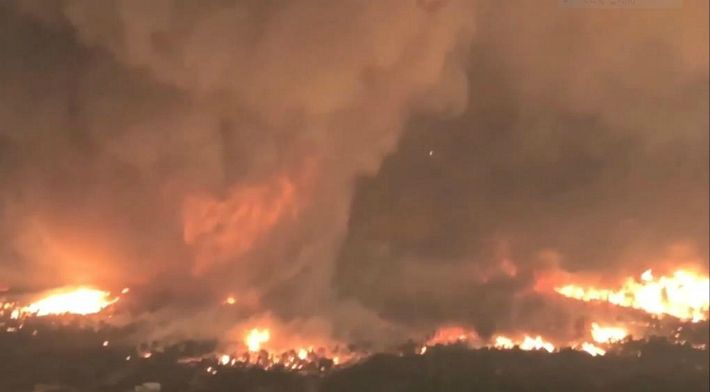 지난주부터 동시 다발적인 산불이 나고 있는 이 곳에 16일(현지시간) 불기둥이 소용돌이처럼 솟구치는 '파이어네이도' 경보가 내려졌다.