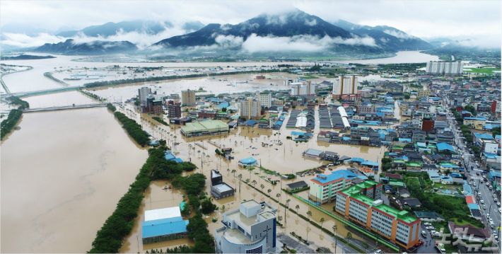 집중호우와 섬진강 범람으로 도심 전체가 물에 잠긴 구례군 전경.(사진=자료사진)