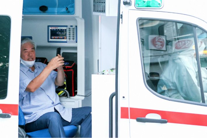 코로나19 확진 판정을 받은 사랑제일교회 전광훈 목사가 17일 오후 서울 성북구 사랑제일교회 사택을 나와 성북보건소 차량에 탑승해 있다.(사진=연합뉴스)