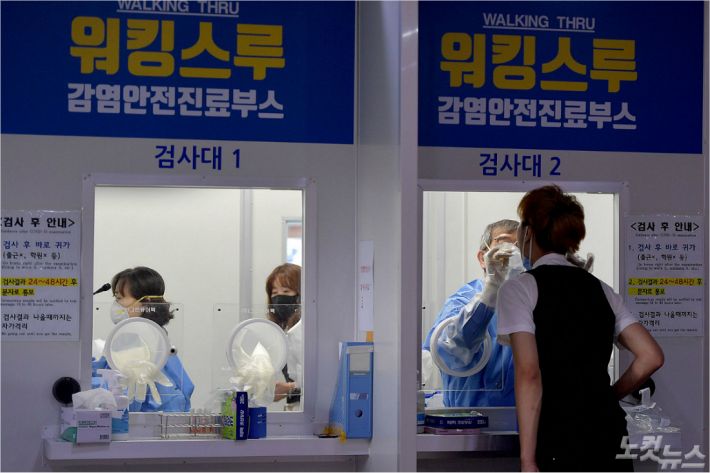 17일 서울 성북구보건소에 마련된 신종 코로나바이러스감염증(코로나19) 임시 선별진료소에서 시민들이 검사를 받고 있다. (사진=박종민 기자)