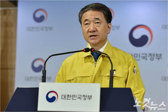 박능후 보건복지부 장관이 22일 오전 정부서울청사에서 코로나19 재확산 위기와 의사단체 집단 휴진과 관련 대국민 담화문을 발표하고 있다. 윤창원기자