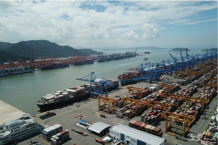 제8호 태풍 '바비(BAVI)가 북상함에 따라 부산항 선박은 25일 밤 24시까지 모두 대피해야 한다. 사진은 부산항 신항 전경(사진=자료사진)