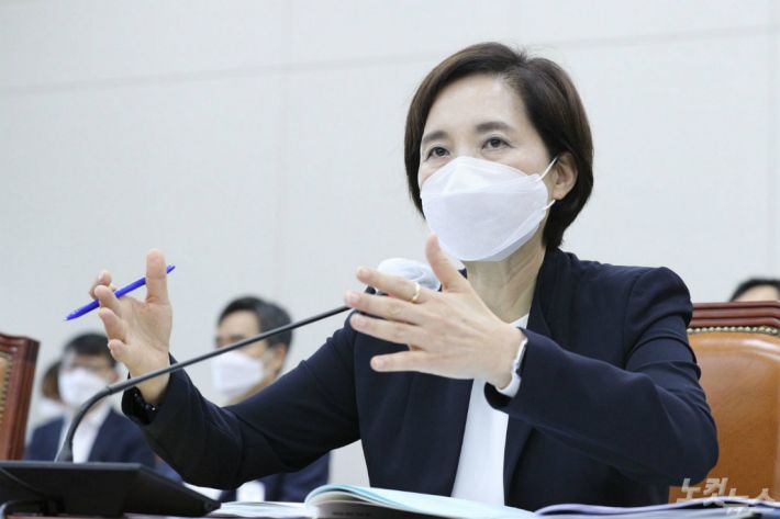 유은혜 부총리겸 교육부 장관이 25일 오전 국회 교육위원회 전체회의에 참석해 의원들 질의에 답하고 있다.(사진=윤창원 기자)