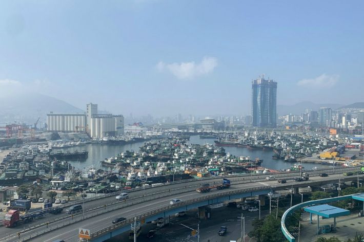 제8호 태풍 '바비(BAVI)'가 북상 중인 25일 오후 부산 동구 부산항 5부두에 선박들이 태풍을 피해 줄지어 정박해있다.(사진=남해해경청 제공)