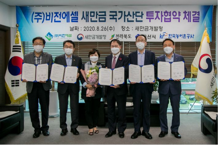 전라북도와 군산시, 새만금개발청 등은 26일 전기차 관련 전장부품 제조기업인 (주)비전에셀과 새만금 산단 입주를 위한 투자협약을 체결했다.