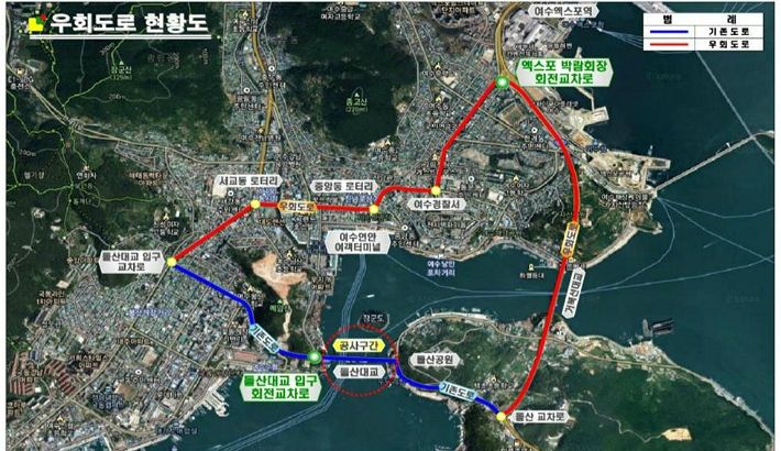 전남 여수 돌산대교 공사구간과 우회도로 현황도(사진=익산지방국토관리청 제공)