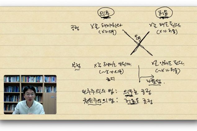 철학과 권홍우 교수는 전공수업인 '논리학' 등 총 3개 과목이 이번 1학기 강의평가에서 상위권을 차지했다. 권 교수는 집중력을 높일 수 있도록 주화면 하단에 교수의 얼굴을 배치하고, 태블릿을 사용한 필기로 칠판 판서의 느낌을 최대한 살렸다.