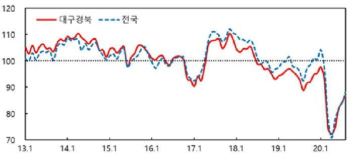 소비자 심리 지수 추이(사진=한국은행 대구경북본부 제공)