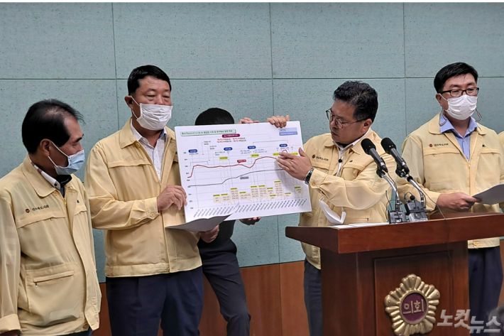 전북도의회 문건위(위원장 이정린)가 27일 댐하류 수해조사 활동 결과를 발표하고 있다.(사진=김용완 기자)