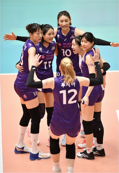 환호하는 흥국생명 선수들 (사진=한국배구연맹 제공)