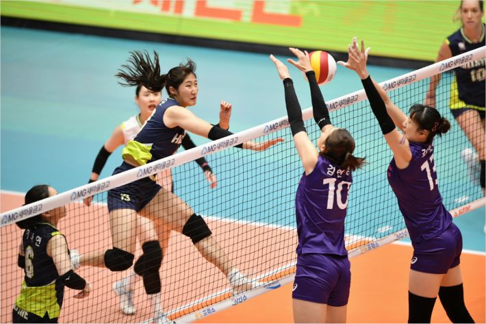 블로킹 8개 성공한 흥국생명, 높이에서 현대건설 압도