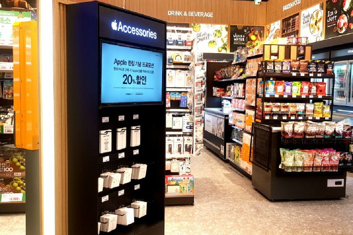 이마트24 성수낙낙점에 설치된 Apple 정품 액세서리 전용 판매대(사진=이마트24 제공)