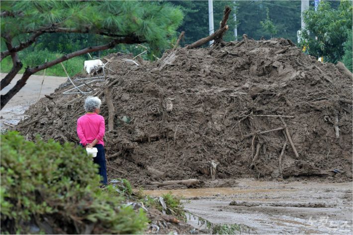 이들이 대피하자마자 이 집에는 물이 들이치면서 축대가 무너져 방과 주방이 유실됐다. 이 이장의 신속한 안내가 없었으면 거센 물살 때문에 인명피해가 날뻔했다.